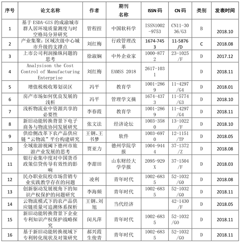 伟德BETVLCTOR19462018年教师核心期刊发表论文
